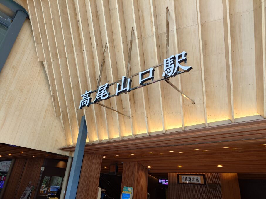 参拝を終えたら、いよいよ高尾山口駅へ向かいます。モダンな木の駅舎を通り抜け、ケーブルカーに乗り込みました
