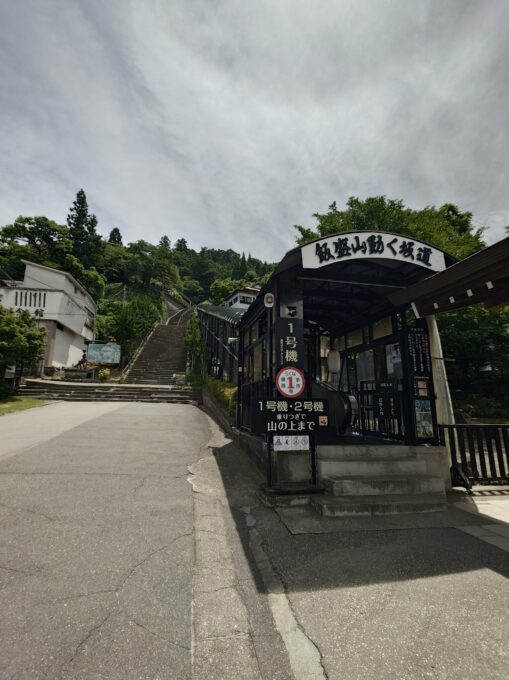 一人旅Tips: 飯盛山の階段はかなり急です。無理せず、片道250円の「スロープコンベア」を使うのが賢い選択です。