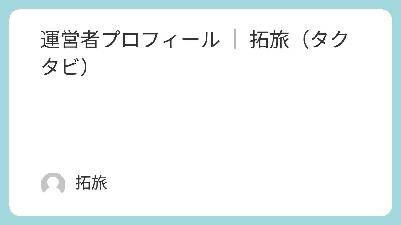 はじめまして!拓旅(タクタビ)といいます。このブログに寄っていただき、ありがとうございます。